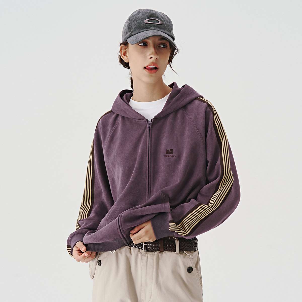 袖のストライプデザインが特徴的なアクセントとなり、シンプルなインナーとの相性抜群。