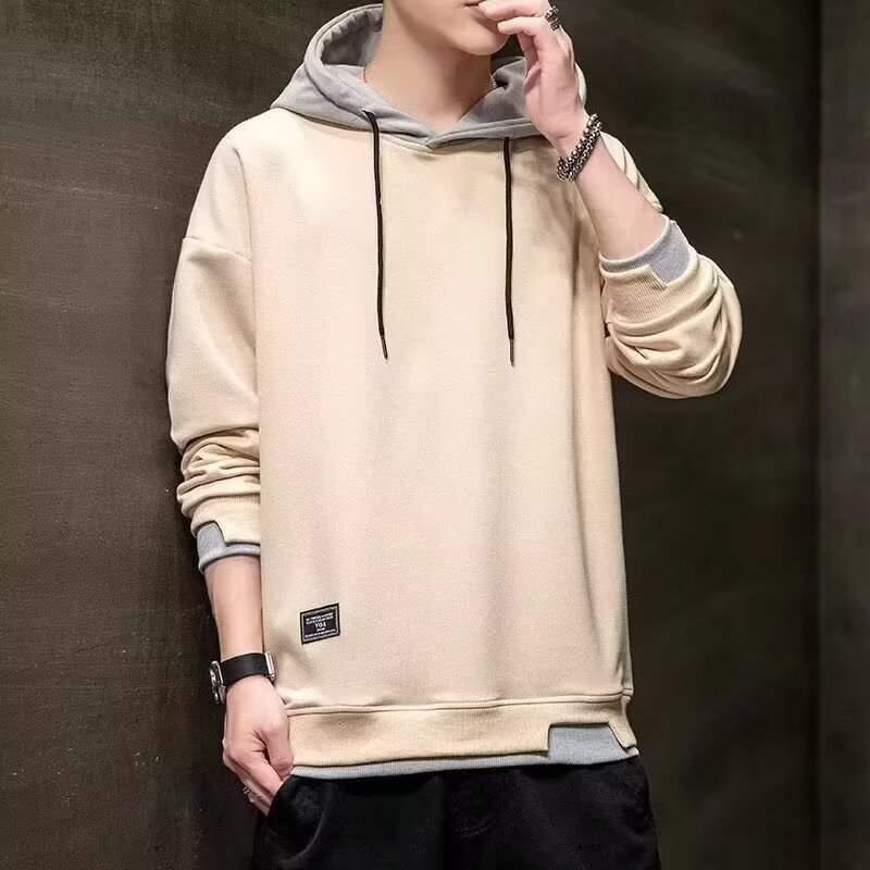 裾と袖口からのぞくレイヤード仕様がおしゃれなメンズパーカー。