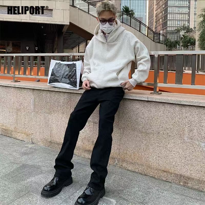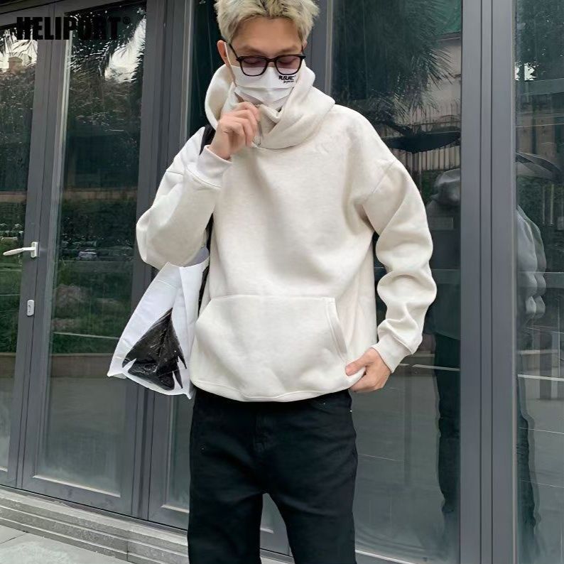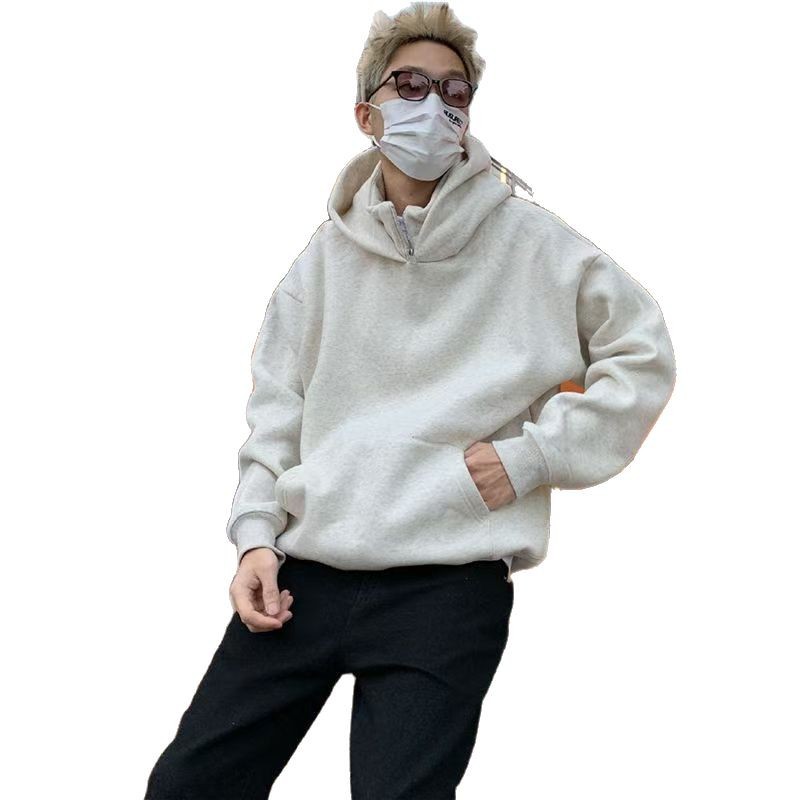 首元まで包み込むボリュームたっぷりのフードが特徴的なメンズパーカーです。