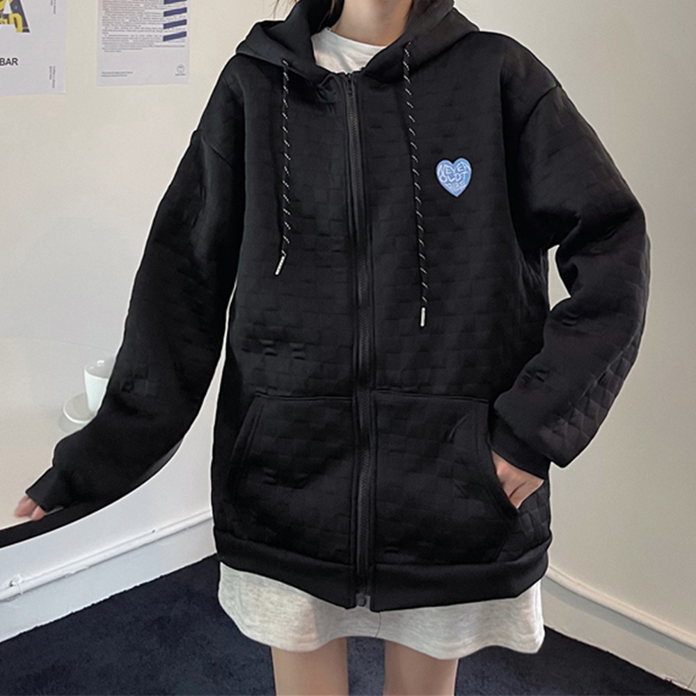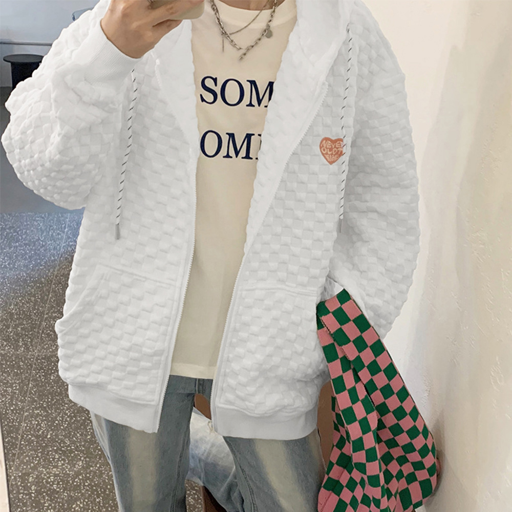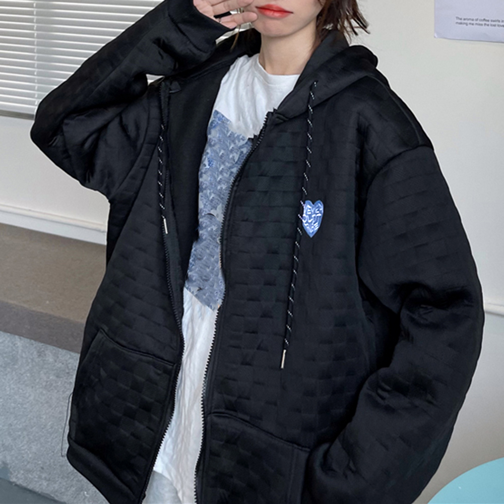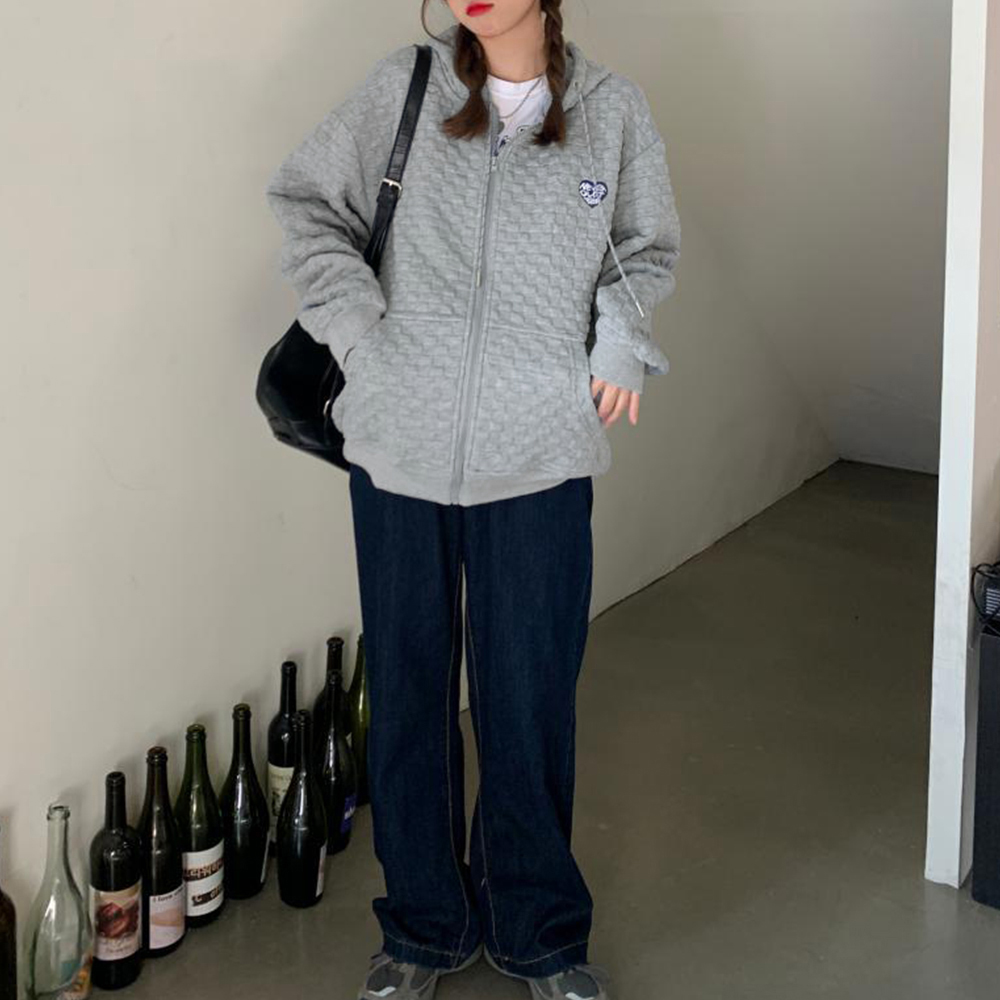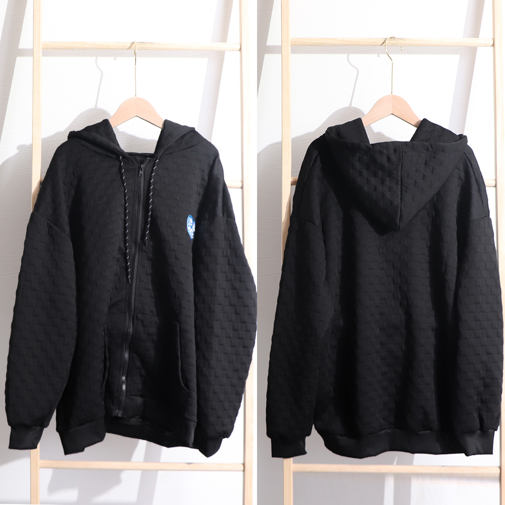キルティング風の立体的な編み地が特徴的なジップアップパーカー