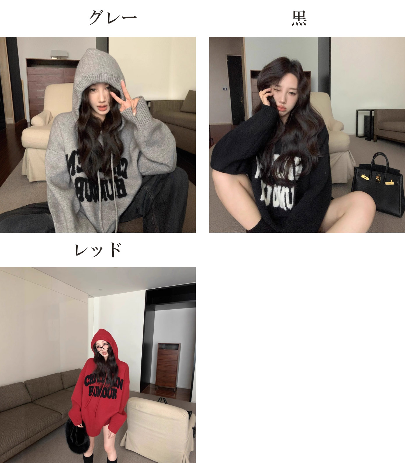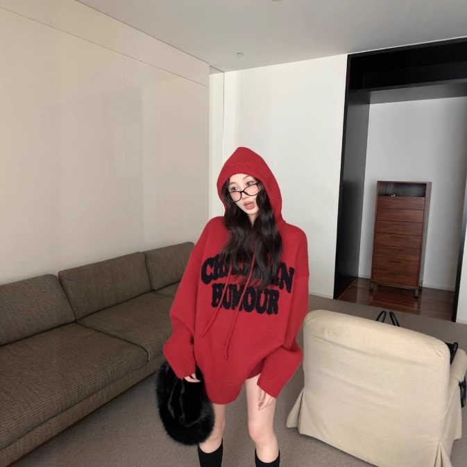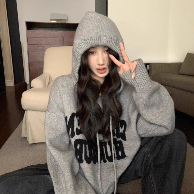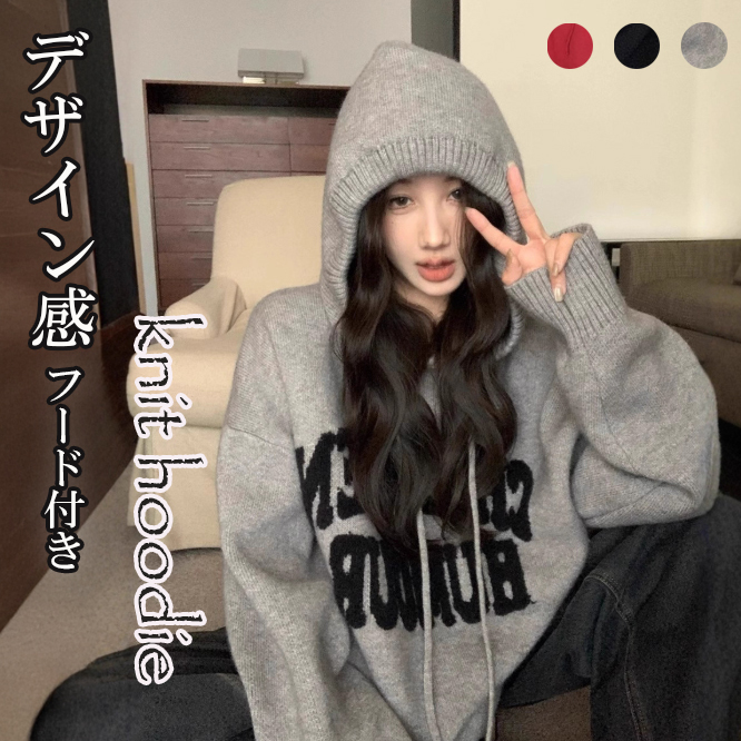 トレンド感抜群のフード付きニットパーカーが登場。