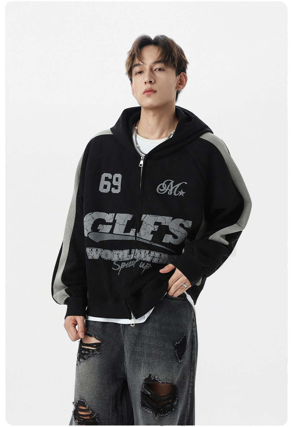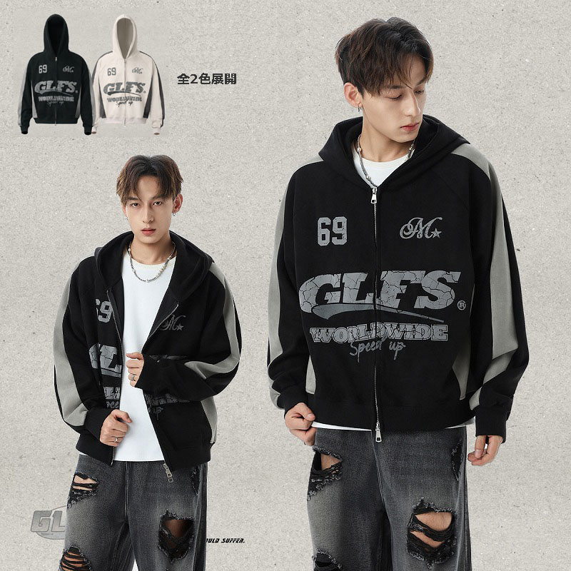 アメリカンスタイルが魅力の配色切り替えデザインパーカー。